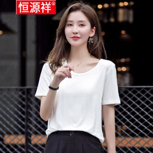 恒源祥品质女装 冰丝T恤女胖200斤冰丝莫代尔短袖恤女夏休闲大码简约领宽松色打底衫 白色 M