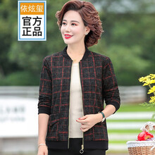 依炫玺轻奢品牌妈妈装春秋装短外套2021新款中老年春秋夹克老年人洋气上衣中年女装 大格红 XL