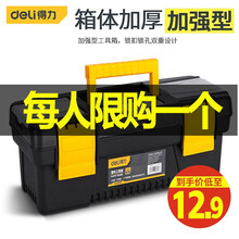 得力(deli)工具箱空箱大号多功能维修工具手提式电工工具箱家用五金收纳箱小学生美术收纳盒 11英寸加强型塑料工具箱DL432011