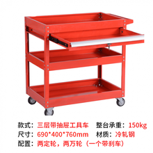 定做加厚三层工具车五金工具箱汽配维修柜多功能零件搬运小周转车 三层红+抽屉+刹车