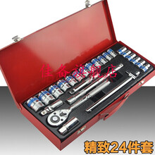 精致套筒扳手套装快速棘轮扳手组合内六角小飞大飞汽车维修工具箱 精致24件套(1/2寸)