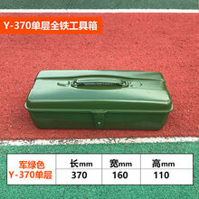 家庭多功能工具箱套装加厚铁皮工具箱大中小号家用五金铁制工具盒铁箱手提式收纳盒车载 Y-370单层工具箱(军绿)