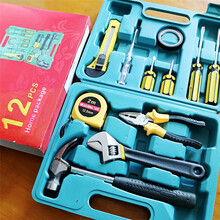 家用五金工具箱套扳手锤子组合多功能工具箱盒12件礼品螺丝刀套装 大号12件工具箱