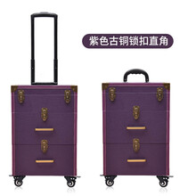 猪油罐带勺 化妆箱跟妆师大号多拉杆专用上门美容纹眉美甲纹绣工具箱 高贵紫三古铜扣锁直角 普通两个刹车轮