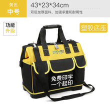 手提五金工具包男帆布多功能维修安装牛津布大加厚工具收纳袋 塑胶底黄色中号
