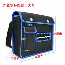 帆布工具包加厚耐磨瓦工收纳包工地木工维修劳保黑色多功能电工包 水杯兜款大号:40-37-15厘米