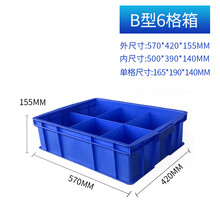 塑料加厚周转箱蓝色分格箱空箱五金零件工具盒加厚耐用多格塑料盒子物料盒螺丝盒分类盒-VAKADA B型6格570*420*150