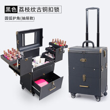 化妆箱拉杆跟妆师大容量多功能多层美甲纹绣收纳盒工具箱 黑色荔枝纹 带抽屉款