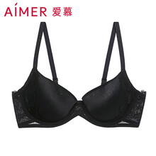 爱慕Aimer文胸3/4三明治薄模杯文胸大胸显小大罩杯内衣女胸罩 时光之旅AM111512黑色E80