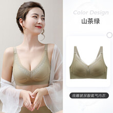 大胸显小后背四排扣文胸无钢圈无痕蕾丝玻尿酸洞洞杯胸罩内衣女曼妮灰色芬黛安白色芬同款 山茶绿 M码(32BC,推荐90-110斤)