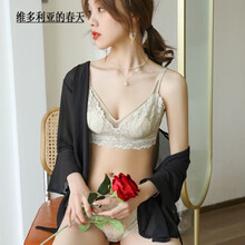 维多利亚的春天夏季新款性感蕾丝薄款大胸显小聚拢无钢圈果冻条透气防凸点文胸套装女夏 茶绿【套装】 38/85(AB杯可穿)