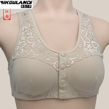 纯棉吊带睡裙中年妈妈文胸前扣棉无钢圈中老年人胸罩背心式内衣女大码薄款夏睡眠胸衣薄膜杯全罩杯妇女老人加 杏色 40/90(125斤左右)