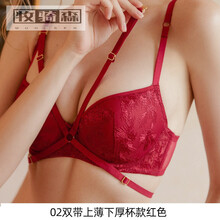 牧骑森品牌2021新款胸罩聚拢欧美法式白色大胸B杯C杯D罩杯内衣套装女文胸 02双带上薄下厚杯款红色 75C