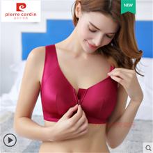 华歌灰色尔皮尔卡丹前扣拉链真丝睡眠文胸薄款桑蚕丝里杯无钢圈全罩杯内衣聚拢胸罩女 酒红 L(75CD-80AB)