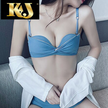 法国KJ高端品牌性感舒适半杯小胸聚拢内衣女无钢圈平胸专用收副乳显大文胸罩套装轻奢高档 藏蓝色套装 70A=32A【舒适聚拢】