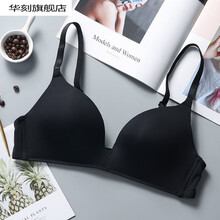 华刻 无痕内衣女运动文胸一片式光面薄款夏季无钢圈舒适胸罩小胸显大 (吊角)黑色 40/90B(薄杯)