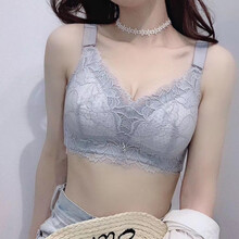 曹督ゞゞ轻奢大牌文胸幸福西施尔同款大胸显小无钢圈文胸全罩杯大码聚拢收副乳防下垂透气款内衣女 灰色 38/85B