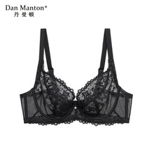丹曼顿品牌夏季全罩杯薄款舒适性感美背大码蕾丝女文胸大胸显小内衣 黑色 75C