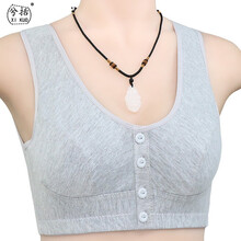 妈妈中老年文胸大号胸罩2020新款色从前面扣的内衣片纽扣款棉质中老年文胸大码背心式内衣女 灰色>大杯布质溥款丰满显瘦中年妇女女土奶罩奶奶 38/8...