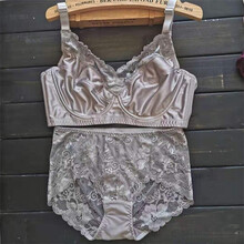超薄杯无海棉大码内衣套装缩胸调整型光面文胸罩杯胸罩大胸显小 灰色 100F/100G/100H请备注