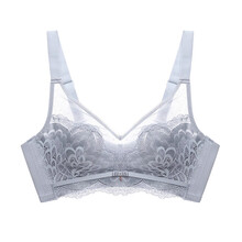 伊丝艾拉内衣女薄款大胸显小无钢圈全罩杯收副乳防凸点透气舒适文胸 星耀蓝 75B/34B