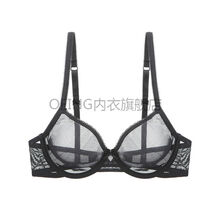 性感蕾丝超薄透明内衣透明胸罩网纱内衣女夏季文胸大胸显小性感蕾丝防下垂大码 黑色 70A