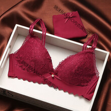 内衣女无钢圈小胸聚拢上托防下垂蕾丝性感大红色本命年文胸套装薄 8482酒红套装 36/80AB