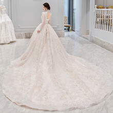 ‼️婚纱2020新款立领主婚纱礼服新娘豪华重工星空大拖尾长袖冬季网红抖音同款 拖尾款 S