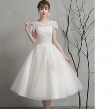 【特价捡漏】一字肩轻婚纱裙2021新款韩式新娘森系仙梦幻简约礼服小个子短款 正常中腰款 S