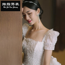 方领法式拖尾小个子婚纱礼服婚纱2021新款新娘泡泡袖森系仙梦幻 齐地款 S