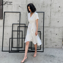 小个子轻婚纱小礼服森系超仙旅拍赫本风显瘦白色法式小晚礼服裙女宴会气质单肩连衣裙赫本风短款主持平时可穿 白色V领短袖款 XS