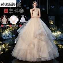 主婚纱2021新款新娘气质抹胸婚纱吊带森系夏季简约大气公主风出门轻纱 齐地婚纱加三件套 L