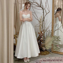 阿亨小个子日式轻婚纱登记照旅行拍照小众法式轻婚纱简约森系超仙2021新款白色小个子吊带学生毕业礼服夏 白色 赠:头 量身定制不退换