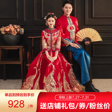 龍曼尼仕撞色秀禾服新娘2021年新款情侣高端婚纱中式结婚礼服古装旗袍敬酒服 426蓝色女(仅女装) S