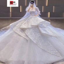 林盼法式高端主婚纱2021新款新娘气质拖尾欧式森系超仙小个子抹胸一字肩春夏轻 拖尾款 XS