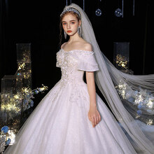 雅鹿品牌法式轻婚纱2021新款气质新娘一字肩森系小个子遮粗手臂拖尾主 2035白色齐地款 XS