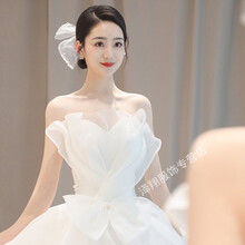 气质显瘦超仙婚服℘‼️〶‼韩式抹胸轻主婚纱2021新款新娘小个子出门纱森系简约显瘦拖尾星空 白色齐地款(赠运费险) 送三件套+皇冠 S
