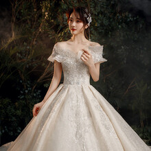 Vedui香港潮牌星空孕妇一字肩主婚纱2021新款气质新娘法式重工奢华宫廷风拖尾夏 白色齐地 XS