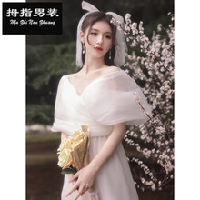 抖音小个子轻婚纱婚博会2021新款新娘日系礼服气质齐地简约感出门纱夏季 米色缎面 S
