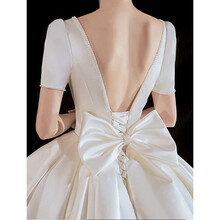 乡秀尔夏季新款缎面婚纱款拖尾轻主绑带婚纱小个子森系超仙简约显瘦 拖尾款 S