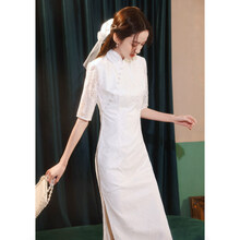 法国巴黎轻奢品牌真丝旗袍婚纱年轻款蕾丝少女民国气质修身领证连衣裙长款改良夏季 同款 白色 M