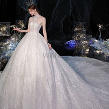 晚苏轻主婚纱裙新款新娘挂脖大拖尾森系超仙梦幻欧式简约星空气质 白色 S
