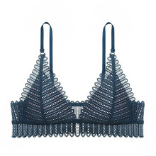 曼柏迪(MANBODI)明星同款法式内衣女蕾丝前扣三角杯bralette无钢圈舒适文胸 蓝色 XL