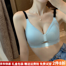 KJ无痕内衣少女夏季超薄款小胸聚拢无钢圈收副乳大U美背睡眠文胸罩 奶油蓝色-套装 S(适合70ABC)