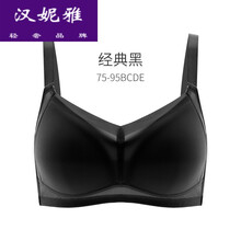 汉妮雅 光面文胸无钢圈大胸显小聚拢调整型运动一片式无痕乳胶内衣女薄款 经典黑 95D