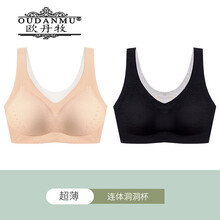 欧丹牧品牌2件价内衣女士夏季新款冰丝无痕无钢圈薄款聚拢小胸文胸背心运动美背 自然肤+气质黑【洞洞连体杯】 M【70BCD 75ABC】