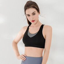 玉儿恋 运动内衣女性感美背跑步健身背心式内衣中强度防震瑜伽文胸 黑灰色 XXL