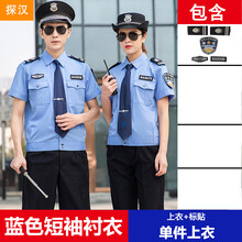 探汉 2011新式保安服衬衣短袖夏装工作服执勤服长袖衬衫保安服衬衣夏季上衣物业制服套装男女 蓝色短袖+标贴 160(建议85-95斤)