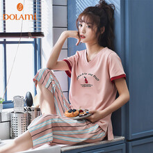 多拉美睡衣女春夏纯棉短袖清新甜美夏季女士家居服可外穿套装 DL1022015 粉色 M