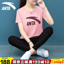 安踏运动套装女装夏季服饰2021新款潮流韩版休闲服半袖圆领宽松短袖T恤跑步健身服显瘦束脚裤女两件套 -4KK107樱花红(两件套) XL/175